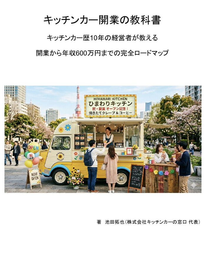セミナーでは語りきれない内容を「キッチンカー開業の教科書」として門外不出のノウハウを約3万文字にまとめた電子書籍です。