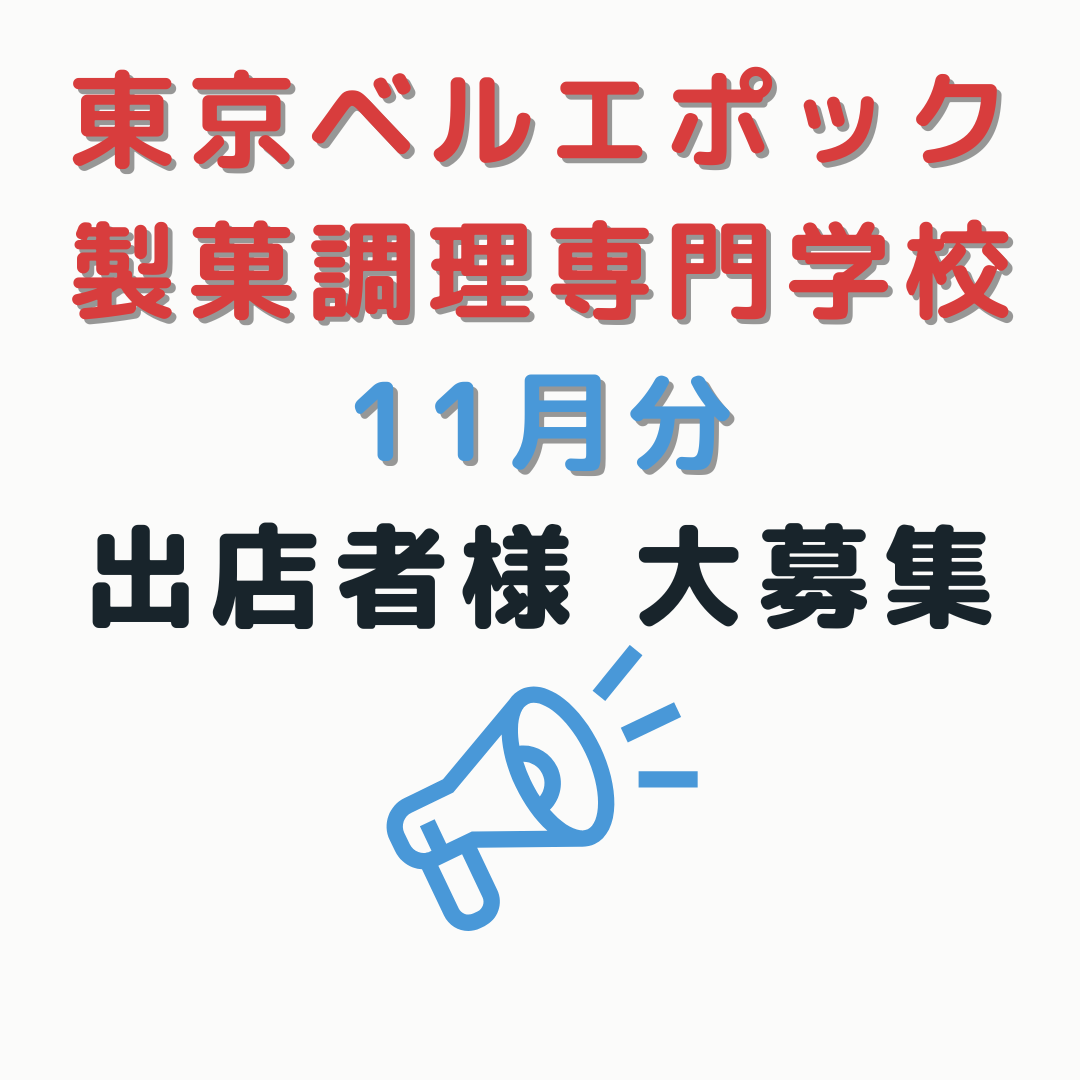 東京都江戸川区葛西にある「東京ベルエポック製菓調理専門学校」での、11月分の出店のご案内がきましたので、ご紹介させていただきます♪